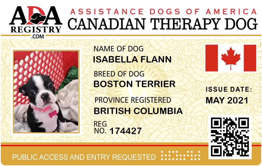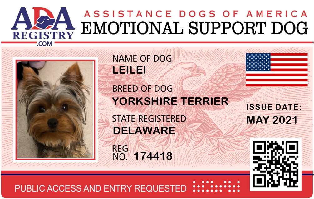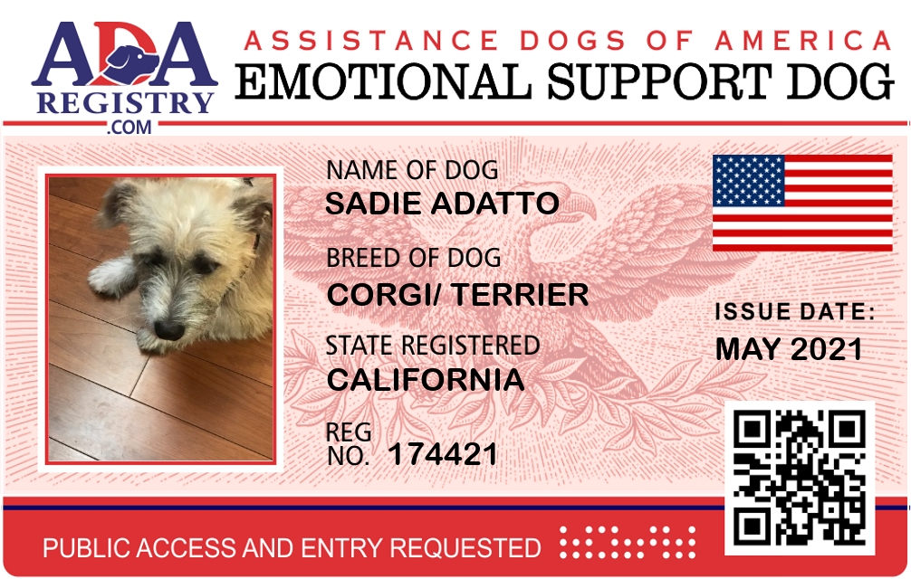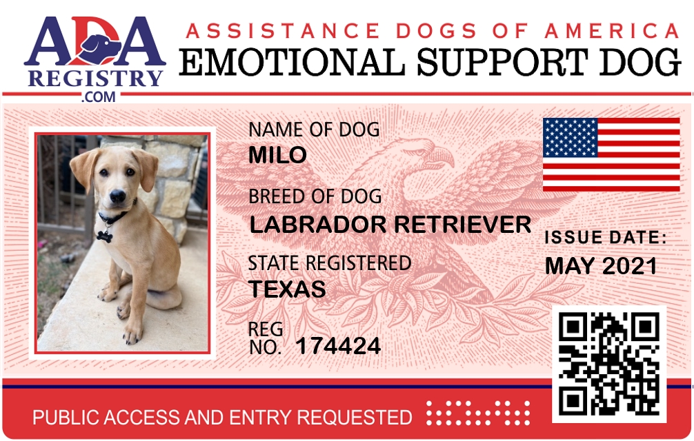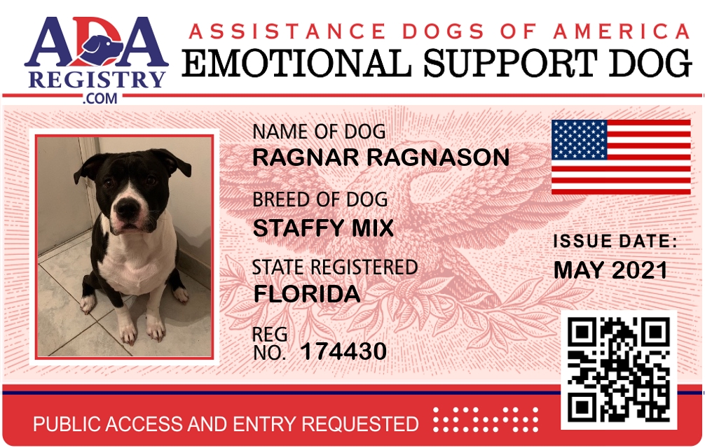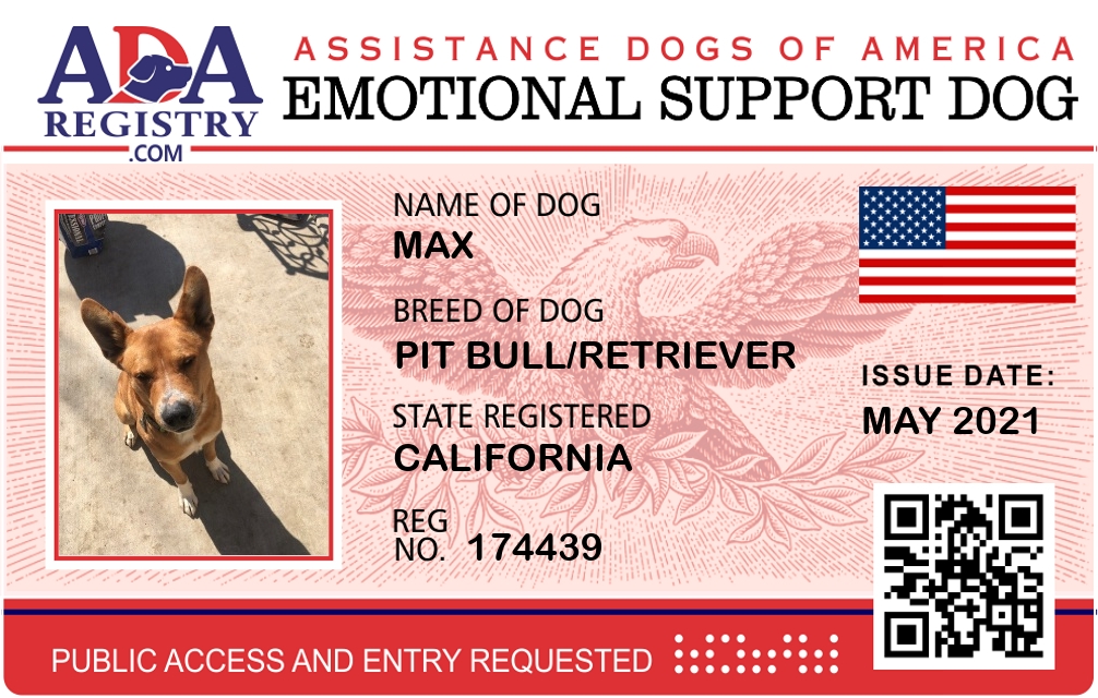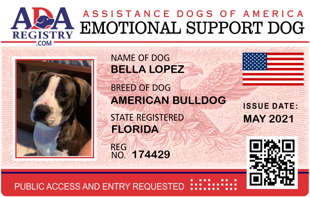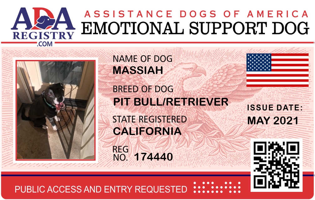 Emotional Support Dog Registration for Rocco Reevey- Obrego