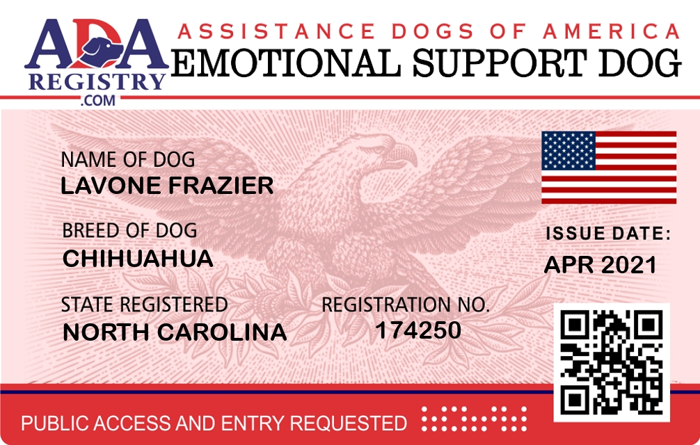 Emotional Support Dog Registration for Lavone Frazier