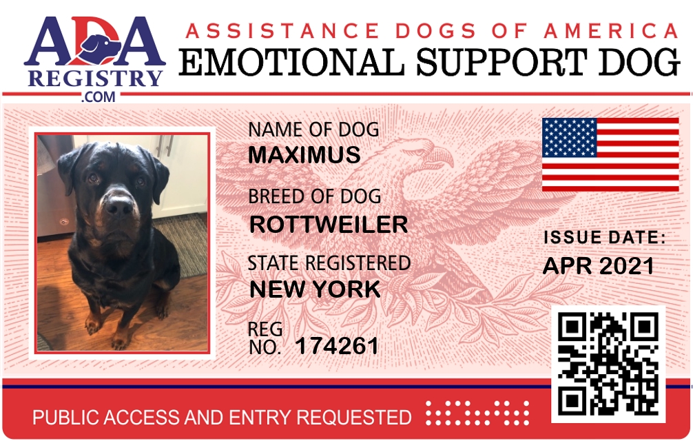 Emotional Support Dog Registration for Maximus