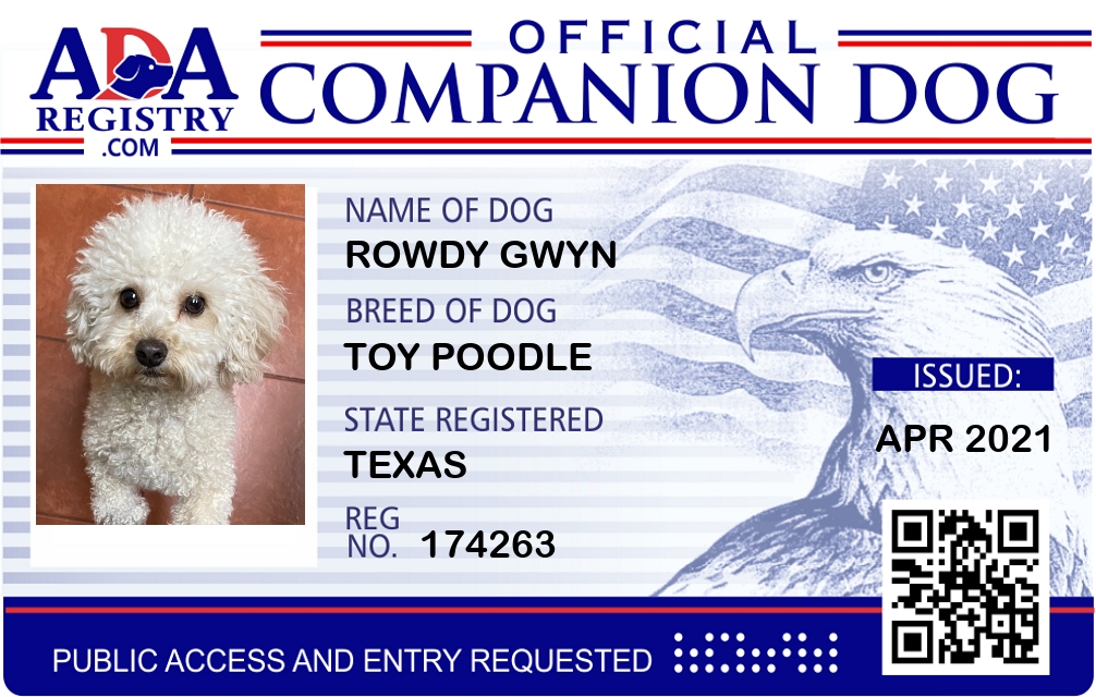 Companion Dog Registration for Rowdy Gwyn