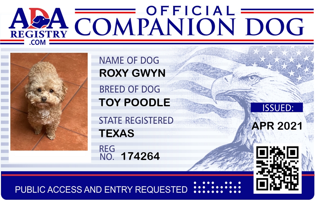Companion Dog Registration for Roxy Gwyn