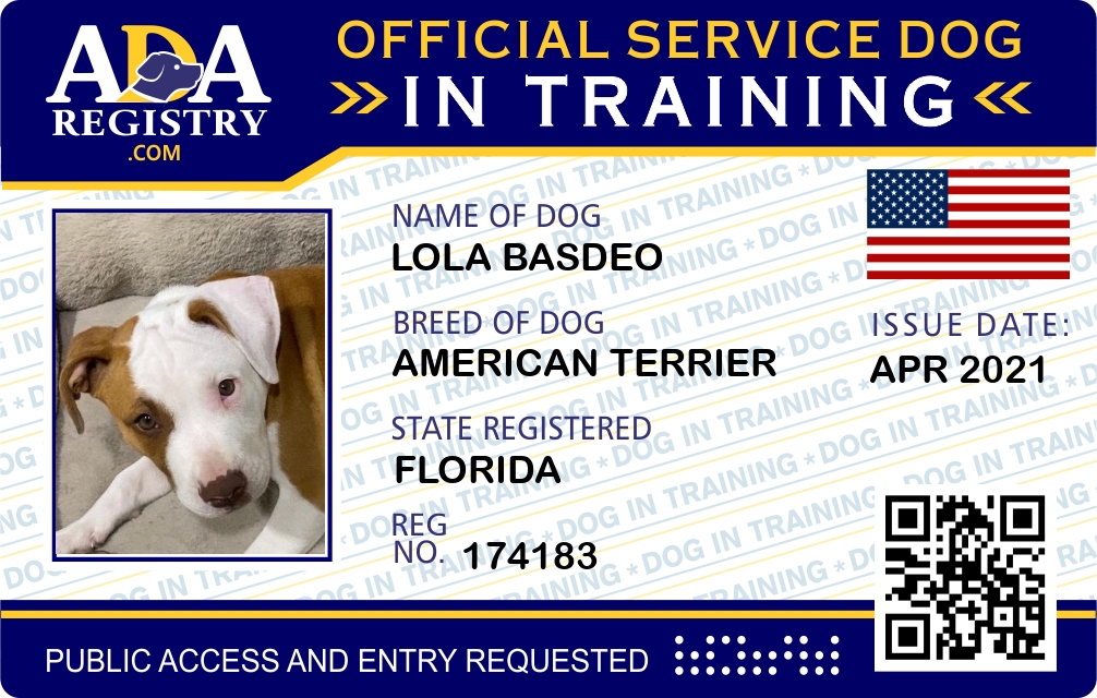 Service Dog In Training Registration for LOLA BASDEO