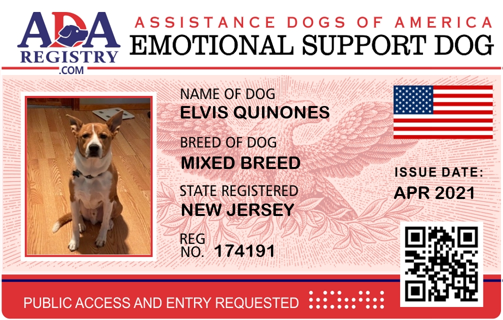 Emotional Support Dog Registration for Elvis Quinones