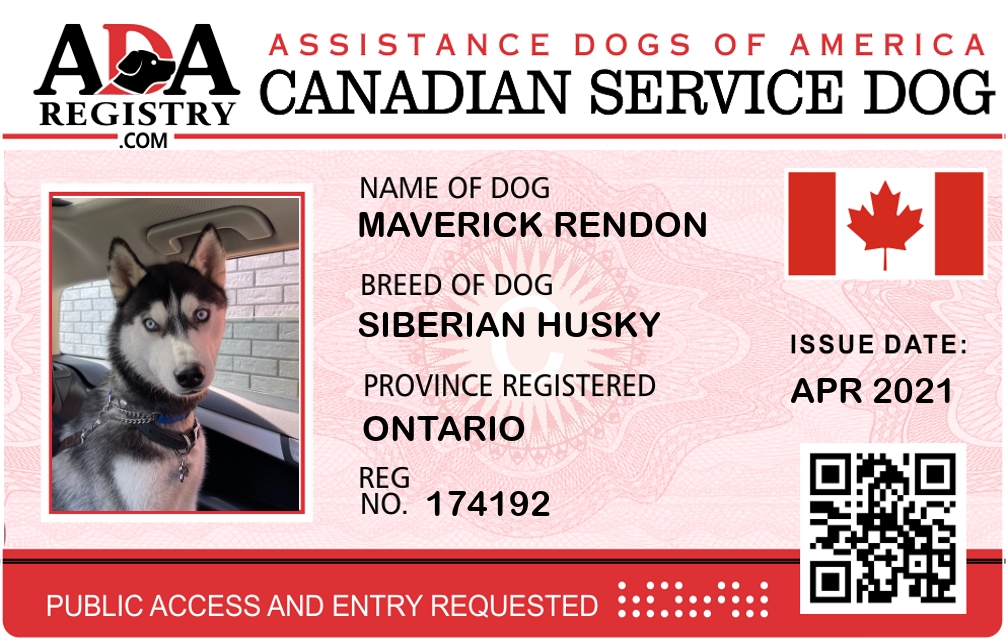 Service Dog Registration for Maverick Rendon