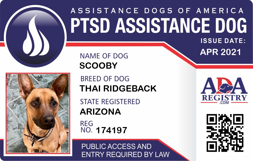 PTSD Assistance Dog Registration for Scooby