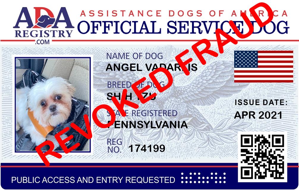Service Dog Registration for Angel Vadarlis