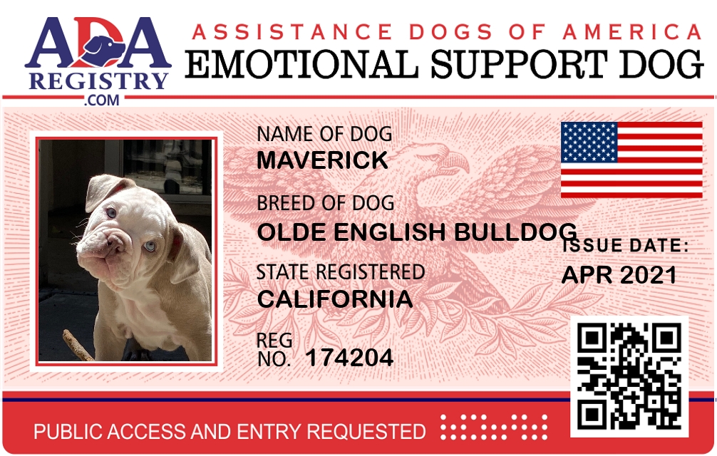 Emotional Support Dog Registration for Maverick