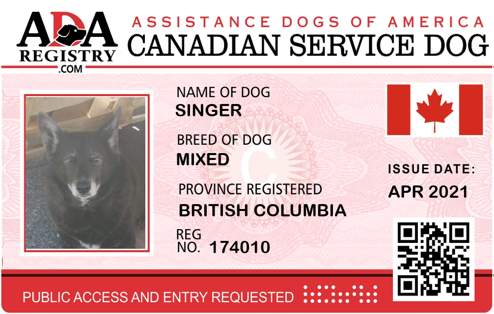 Service Dog Registration for Singer