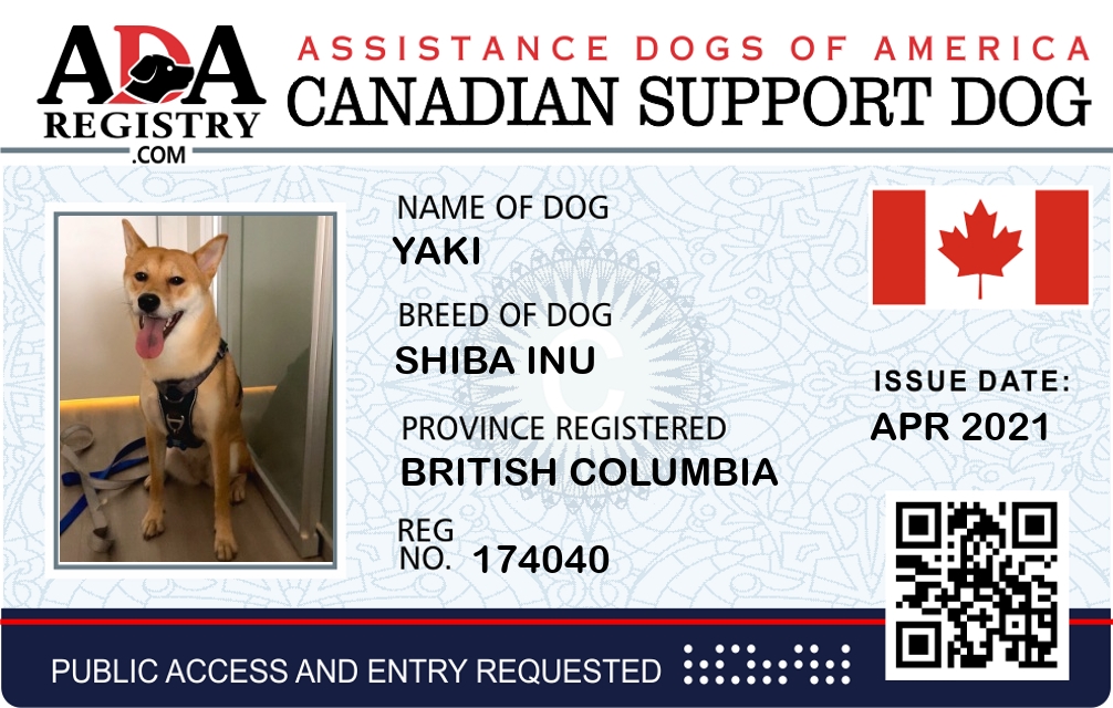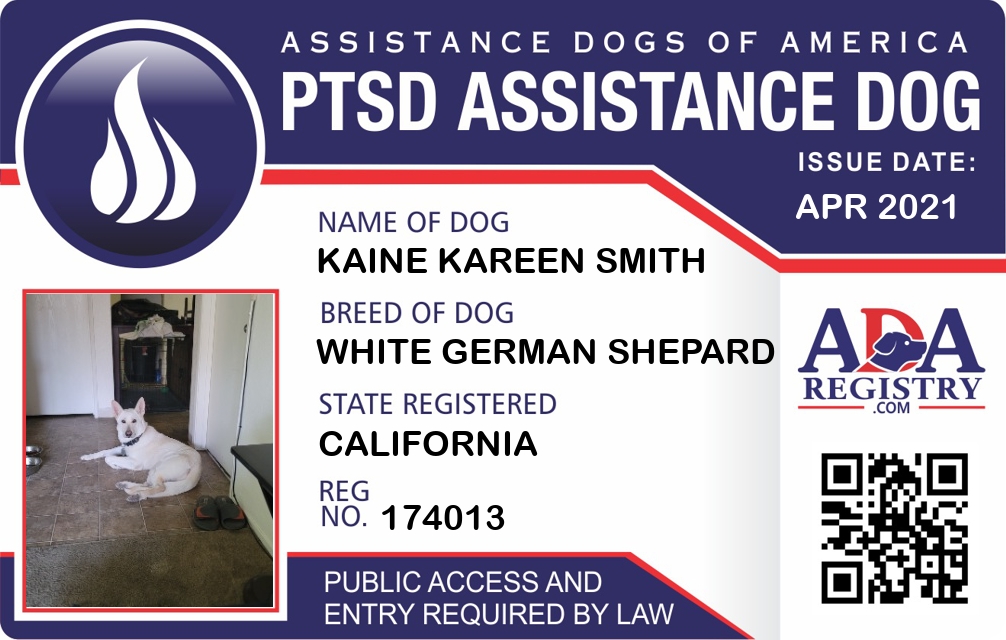 PTSD Assistance Dog Registration for Kaine Kareen Smith