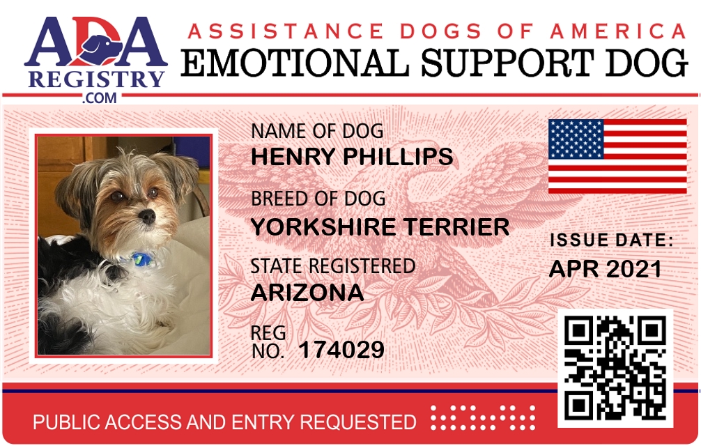 Emotional Support Dog Registration for Henry Phillips