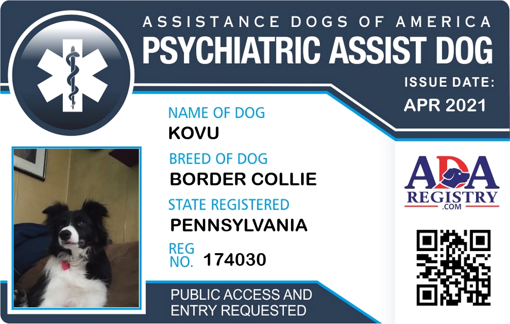 Psychiatric Service Dog Registration for Kovu