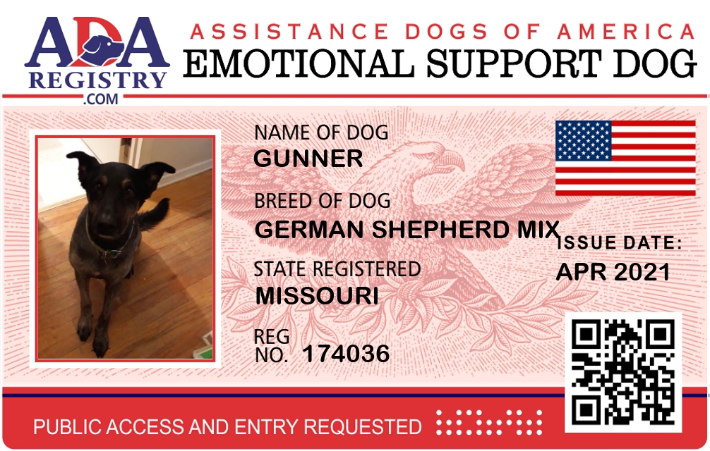 Emotional Support Dog Registration for Gunner