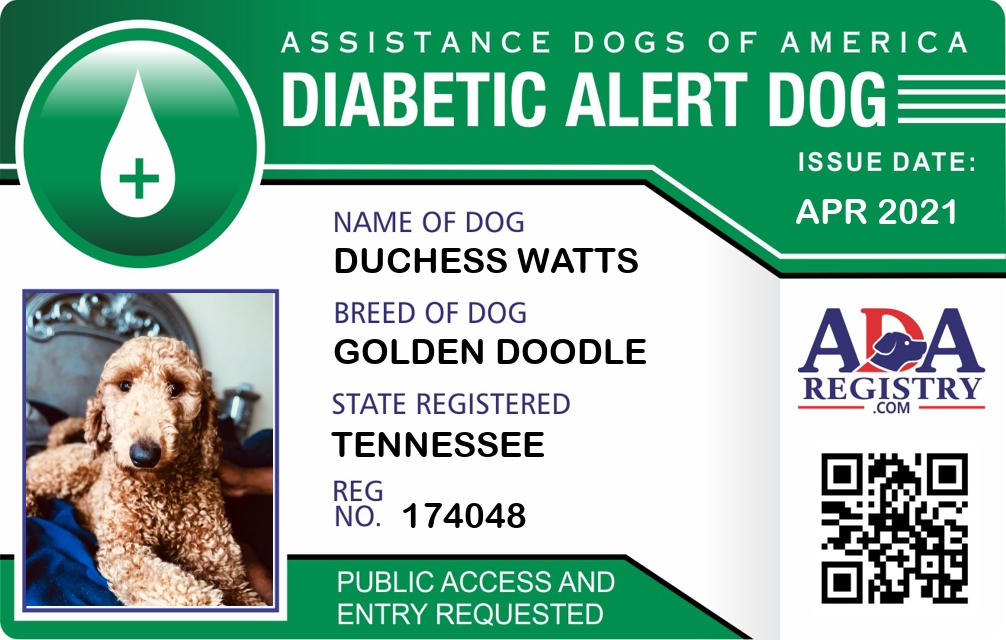 Diabetic Alert Dog Registration for Duchess Watts
