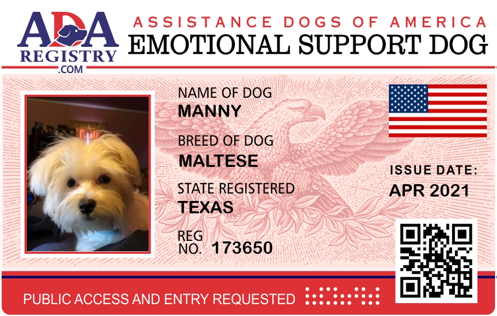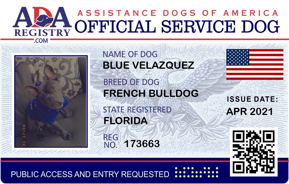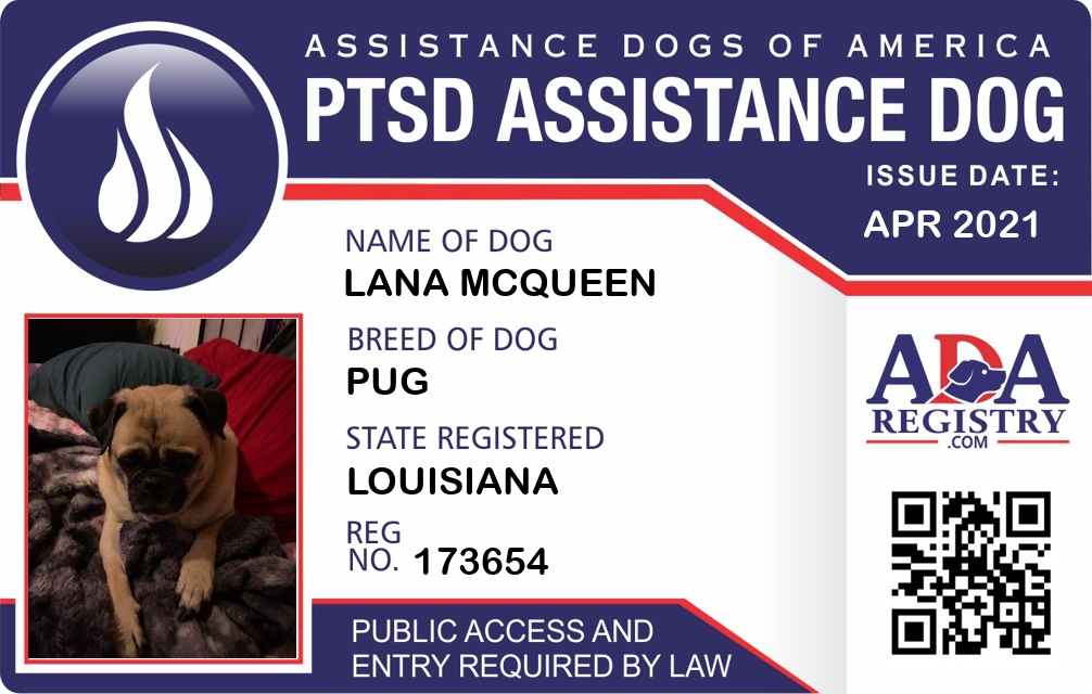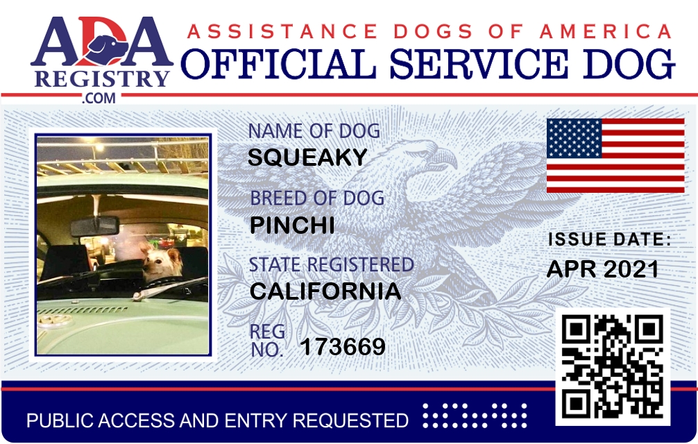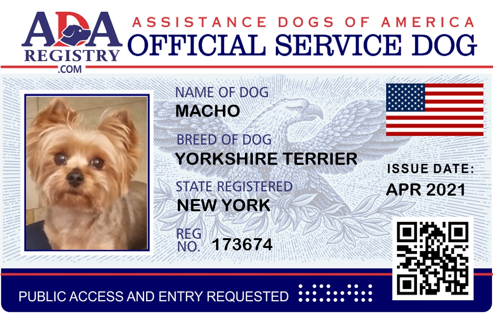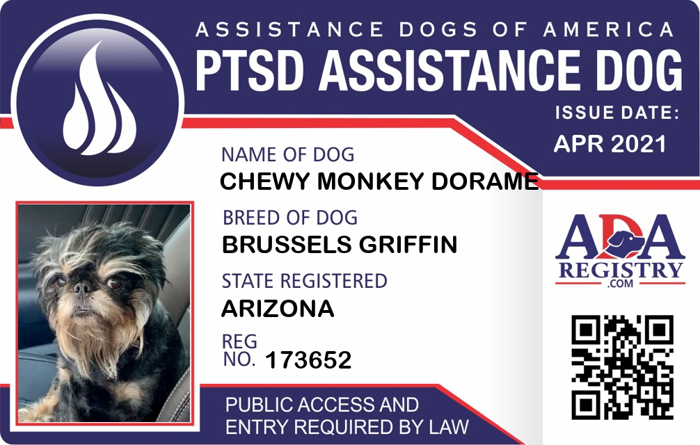 PTSD Assistance Dog Registration for Chewy Monkey Dorame