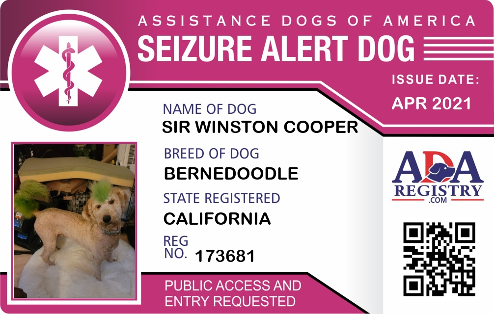 Seizure Assistance Dog Registration for Sir Winston Cooper