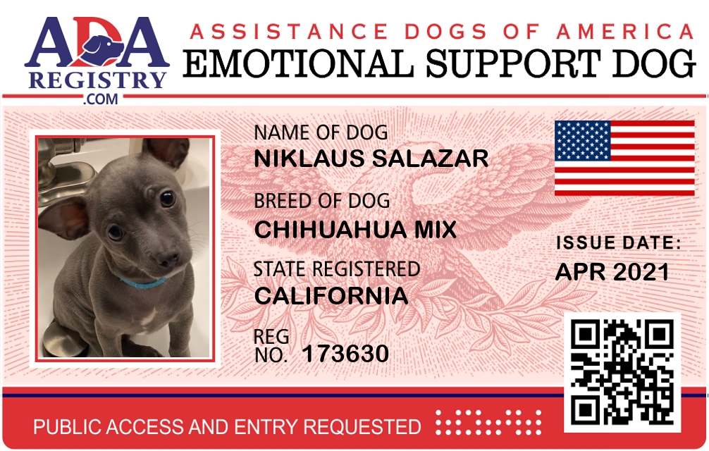 Emotional Support Dog Registration for Niklaus Salazar