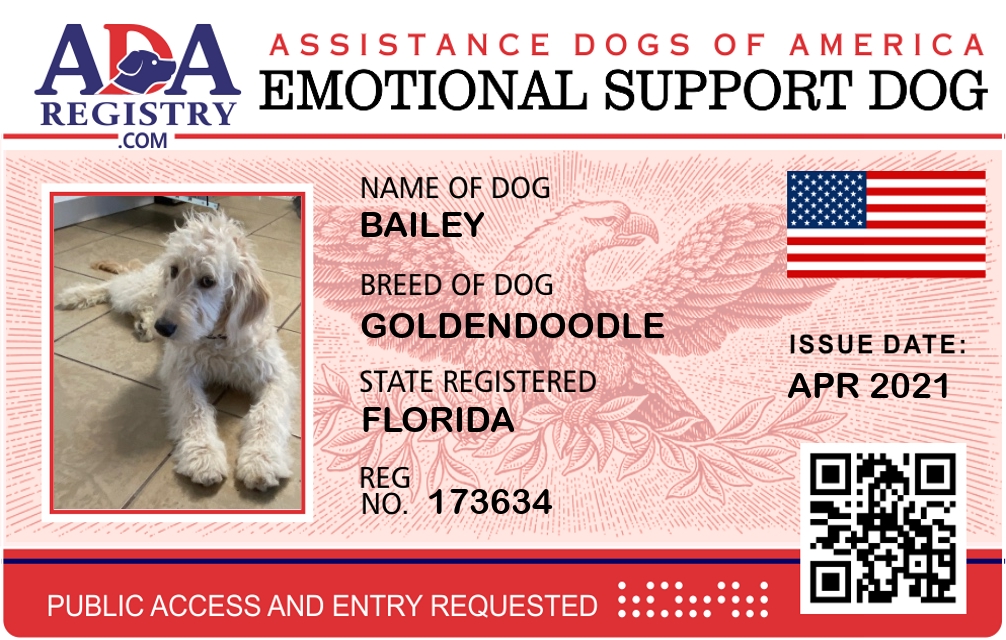 Emotional Support Dog Registration for Bailey