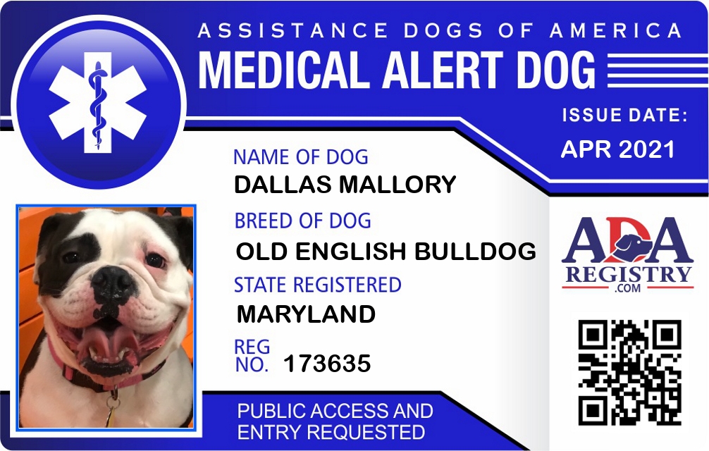 Medical Alert Dog Registration for Dallas Mallory