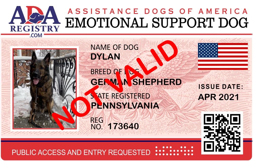 Emotional Support Dog Registration for Dylan