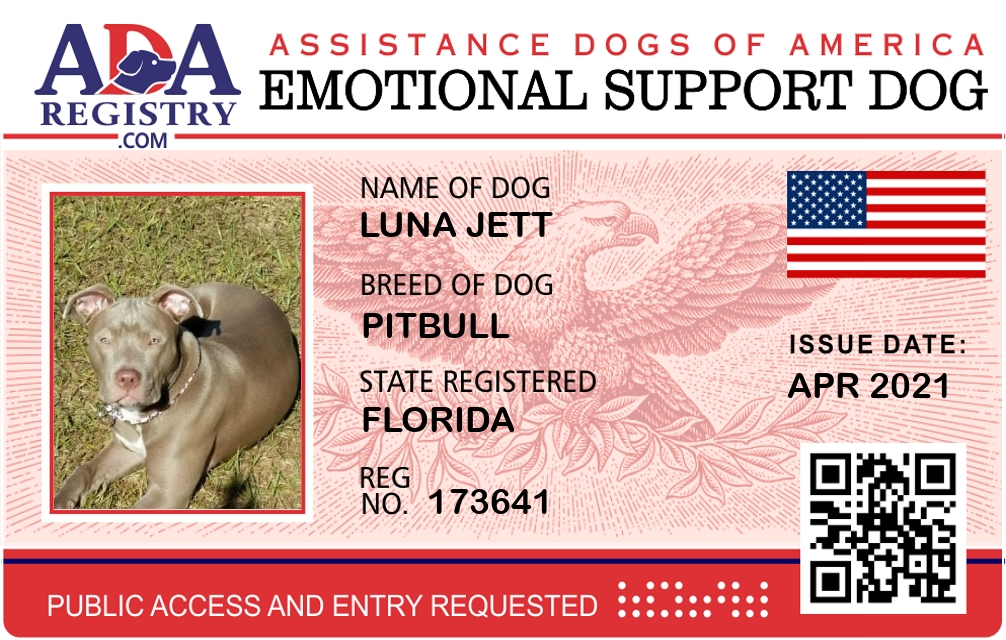 Emotional Support Dog Registration for Luna Jett