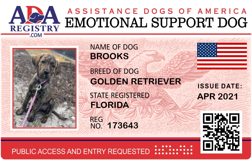 Emotional Support Dog Registration for Brooks