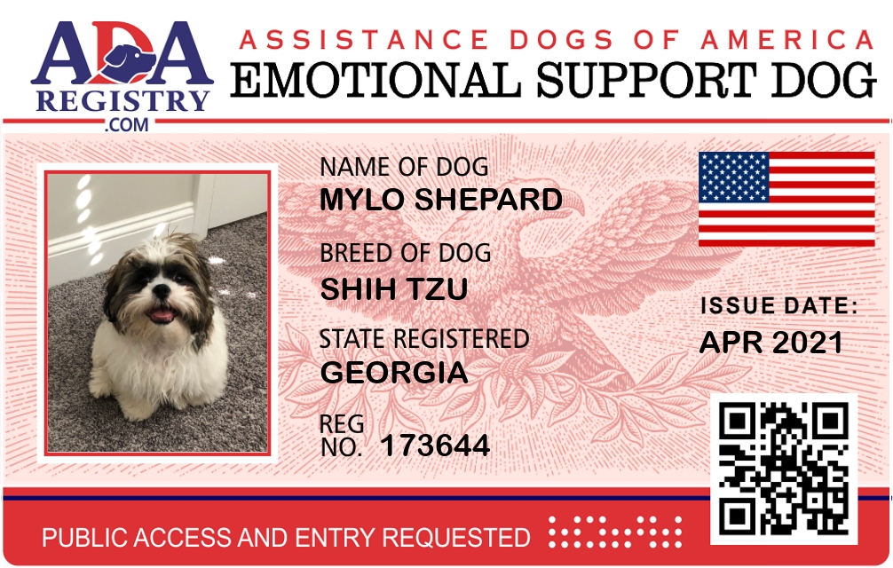 Emotional Support Dog Registration for Mylo Shepard