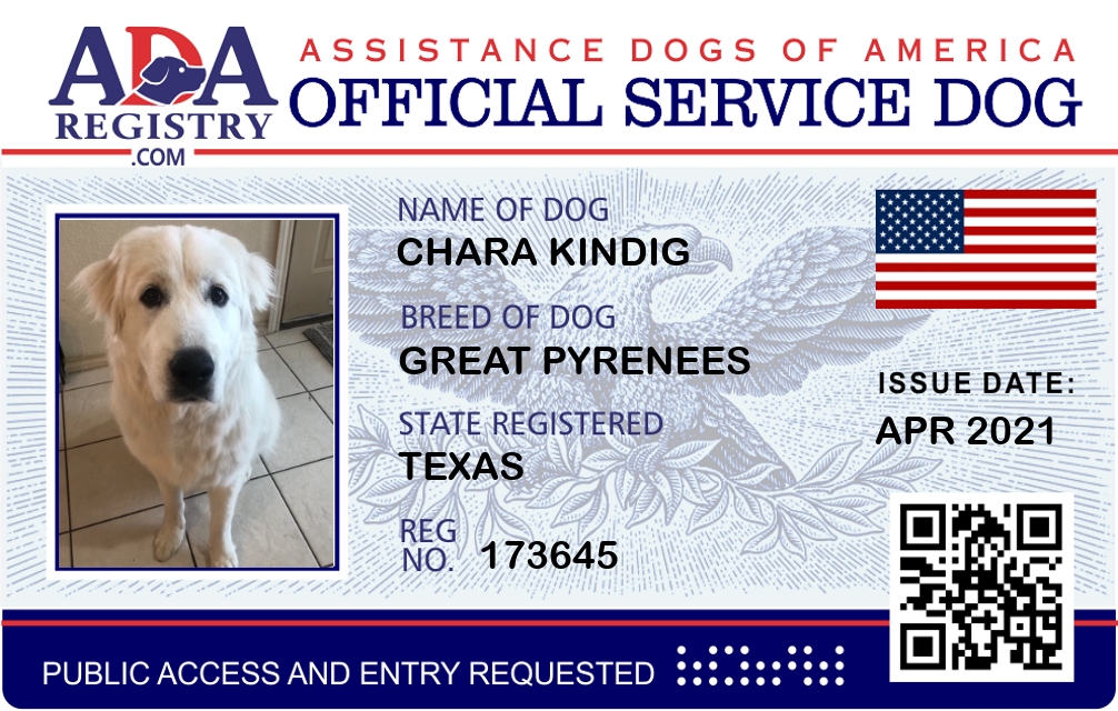 Service Dog Registration for Chara Kindig