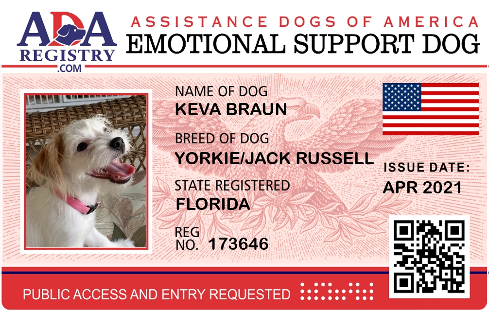 Emotional Support Dog Registration for Keva Braun