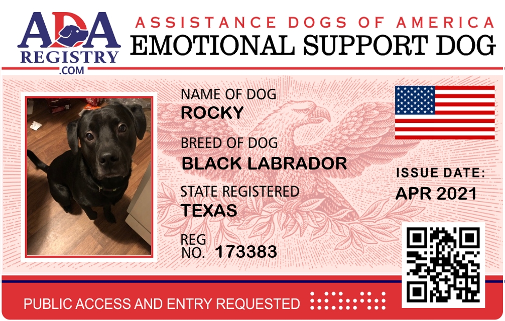 Emotional Support Dog Registration for Rocky