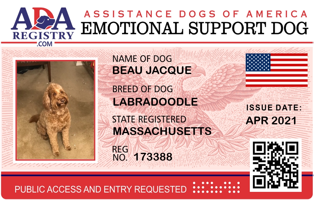 Emotional Support Dog Registration for Beau Jacque