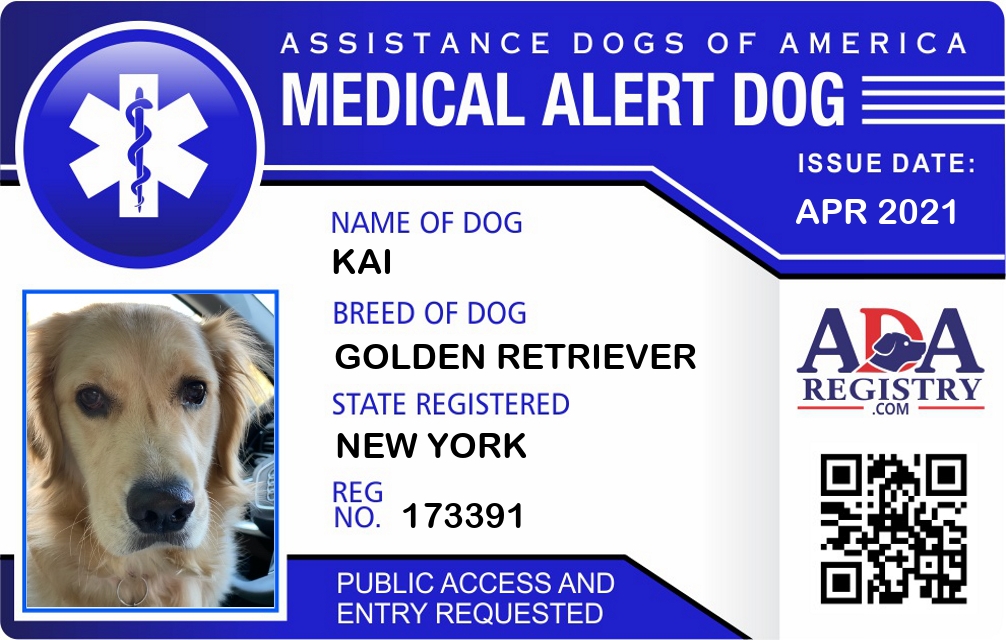 Medical Alert Dog Registration for Kai