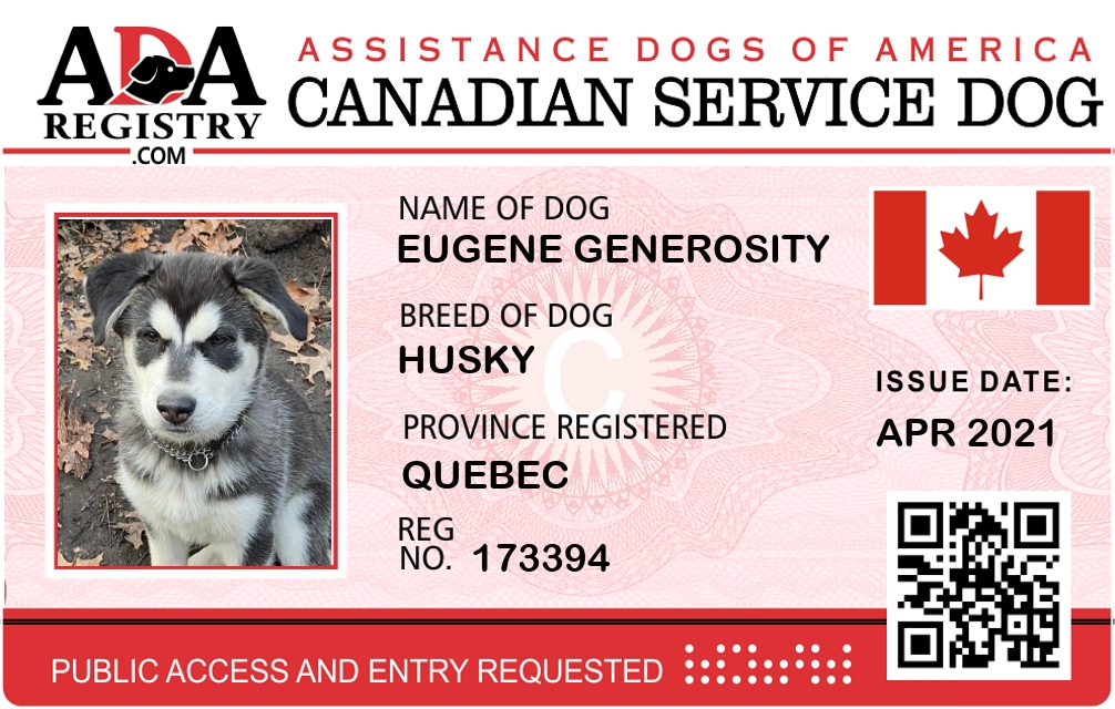 Service Dog Registration for Eugene Generosity