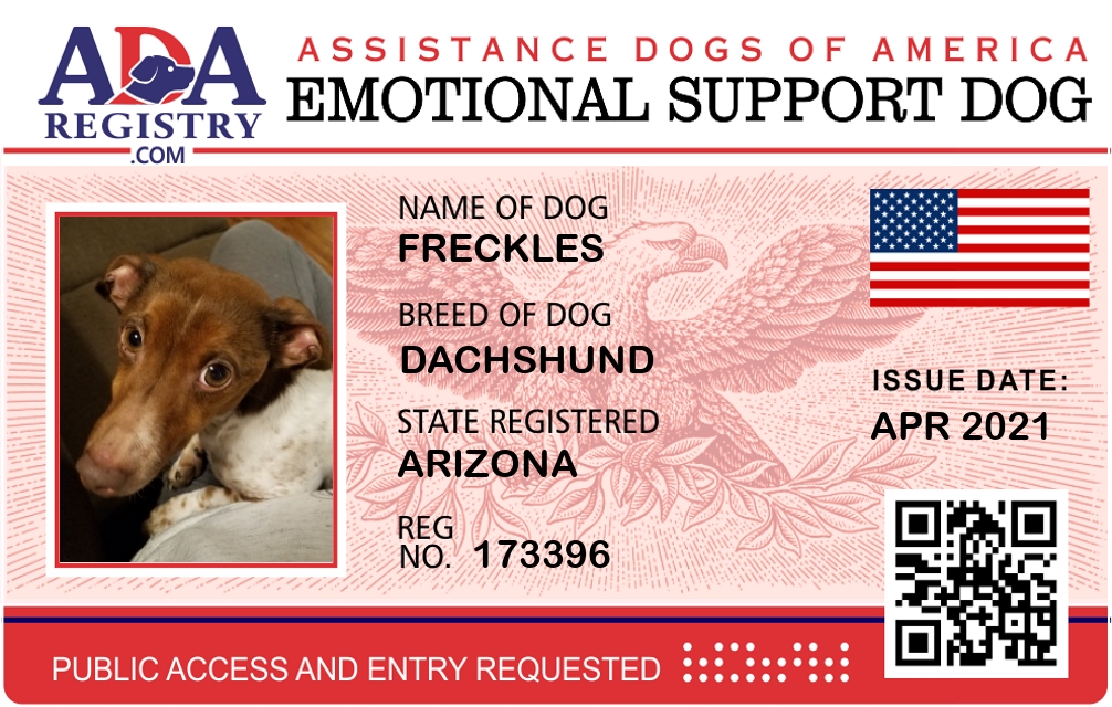 Emotional Support Dog Registration for Freckles
