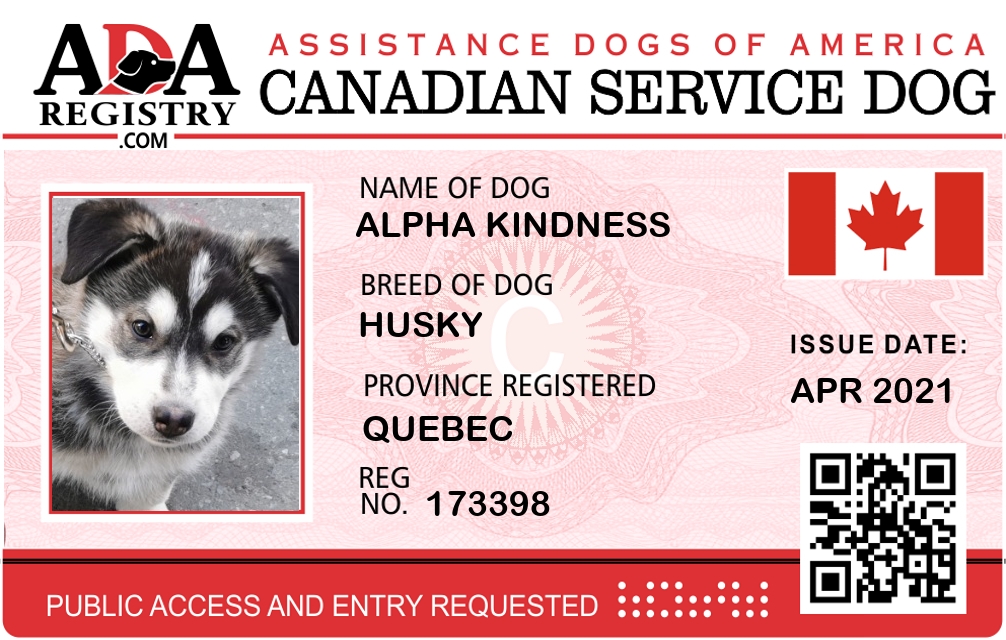 Service Dog Registration for Alpha Kindness