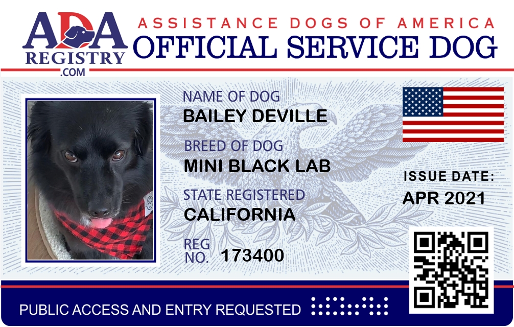 Service Dog Registration for Bailey DeVille