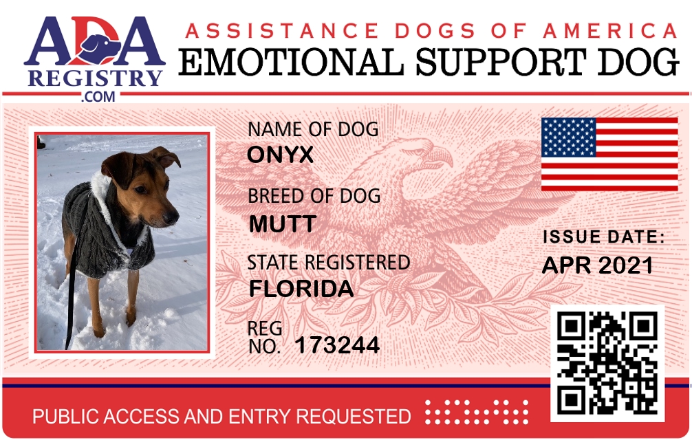 Emotional Support Dog Registration for Onyx