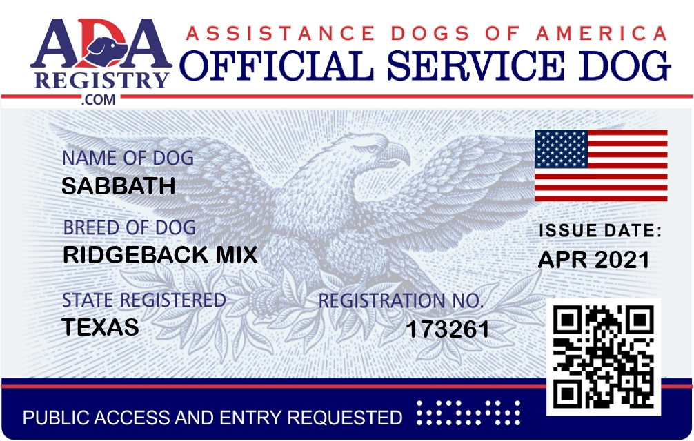 Service Dog Registration for Sabbath