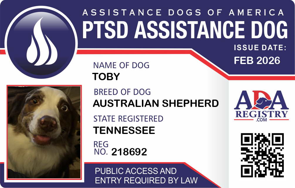 PTSD Assistance Dog Registration for Toby