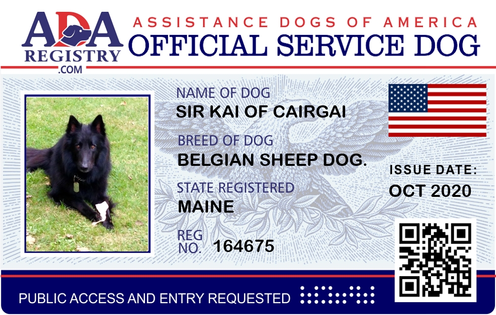 Service Dog Registration for Sir Kai of Cairgai