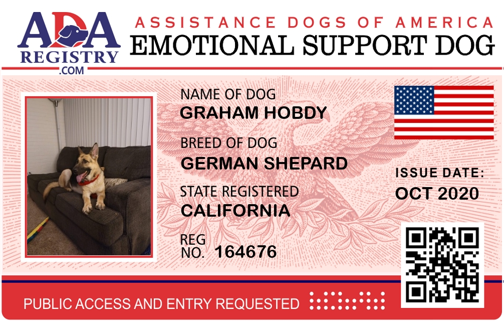 Emotional Support Dog Registration for Graham Hobdy