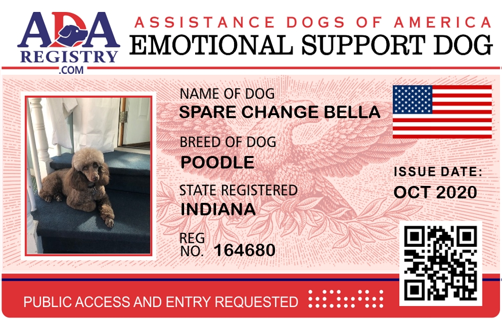 Emotional Support Dog Registration for spare change Bella