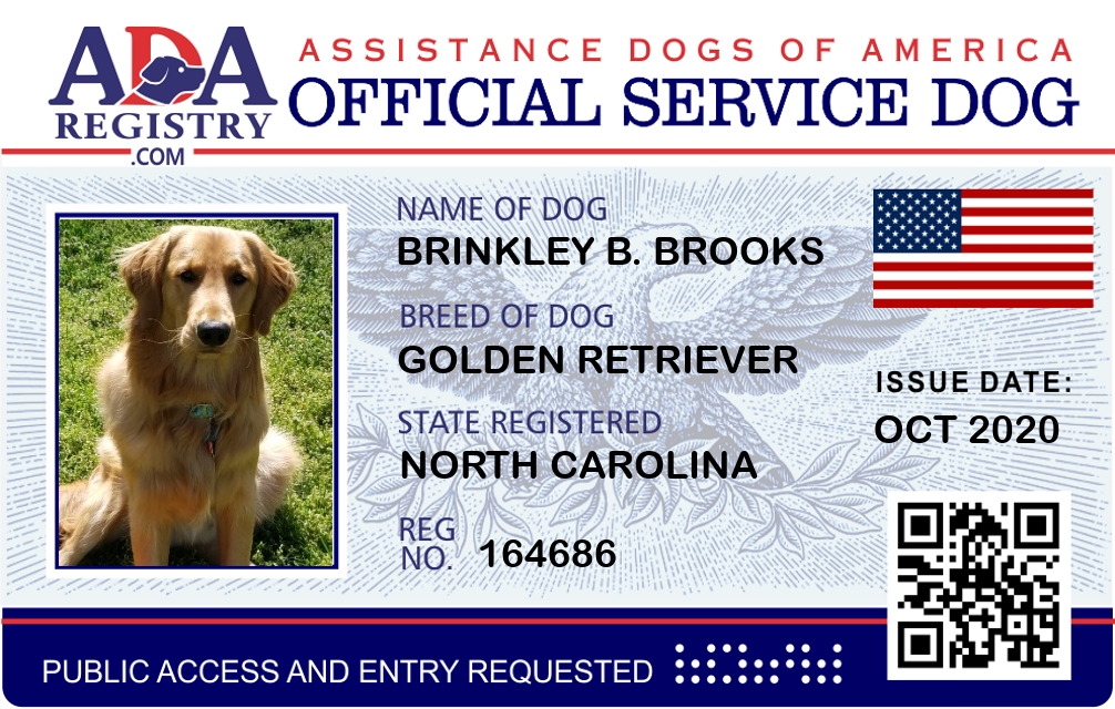 Service Dog Registration for Brinkley B. Brooks