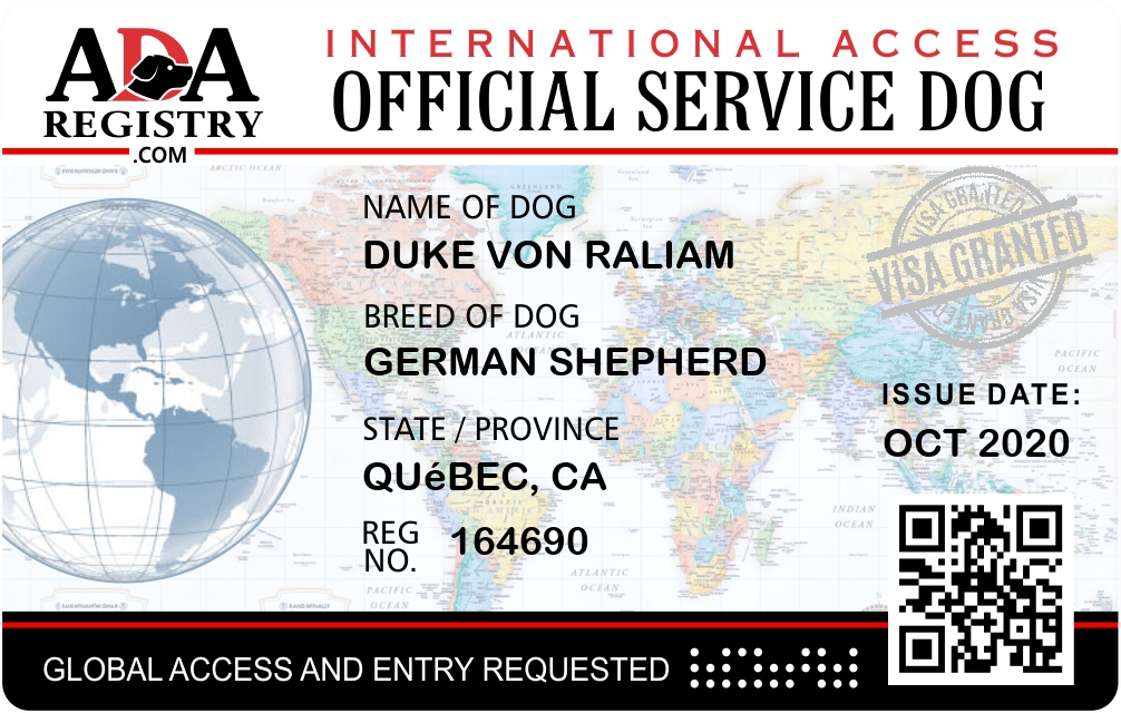 Service Dog Registration for Duke Von Raliam