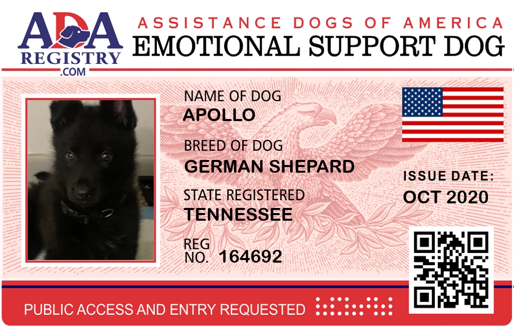 Emotional Support Dog Registration for Apollo