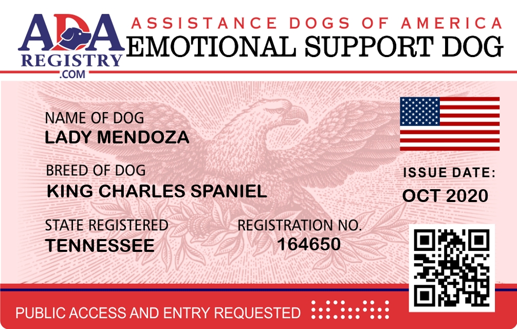 Emotional Support Dog Registration for Lady Mendoza