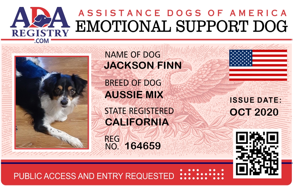 Emotional Support Dog Registration for Jackson Finn