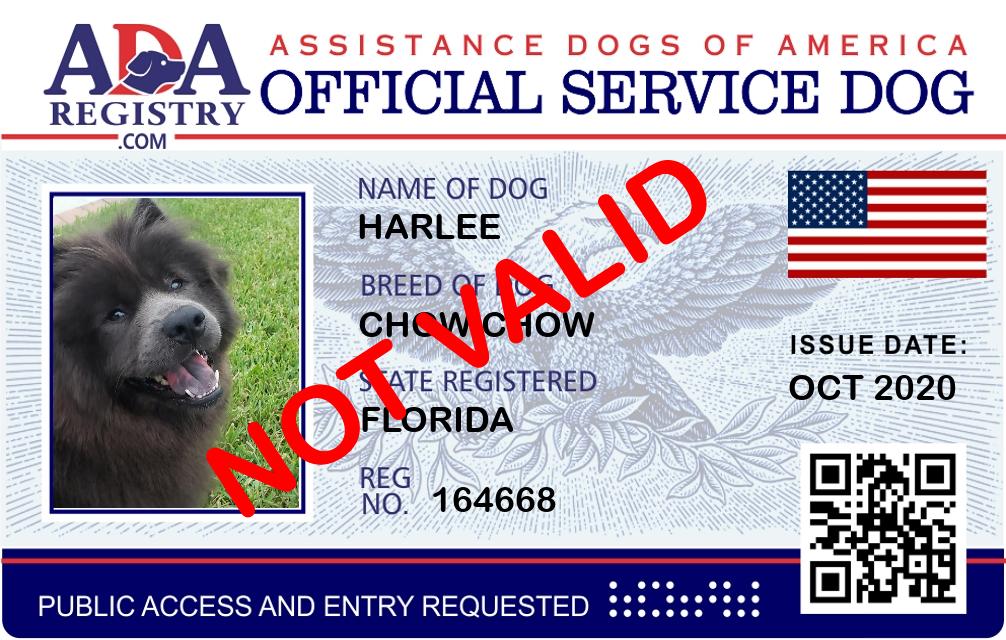 Service Dog Registration for Harley