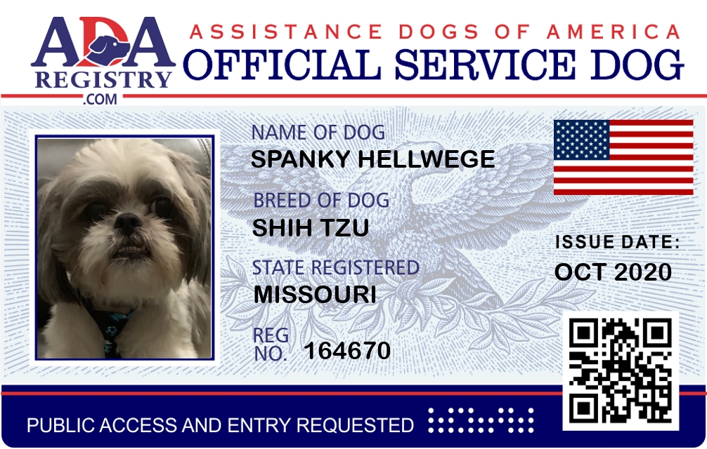Service Dog Registration for Spanky Hellwege