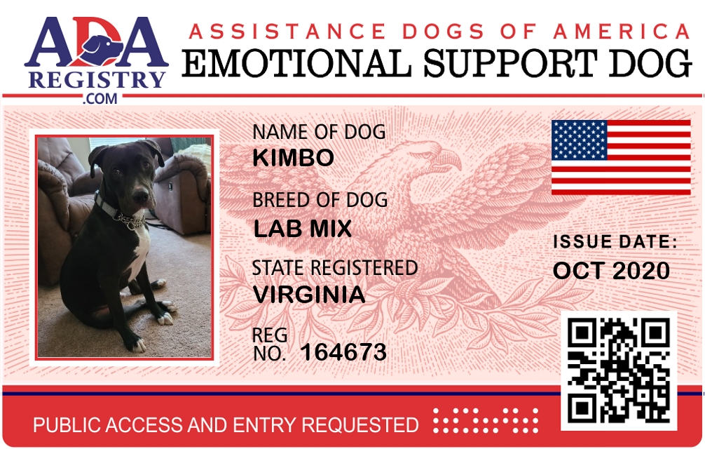 Emotional Support Dog Registration for Kimbo