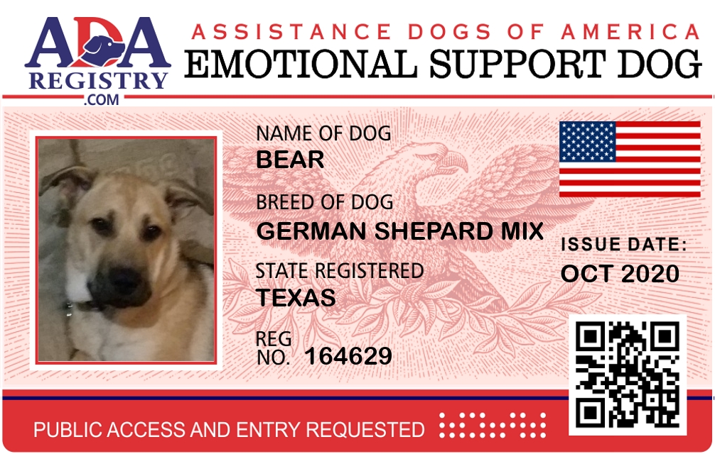 Emotional Support Dog Registration for Bear